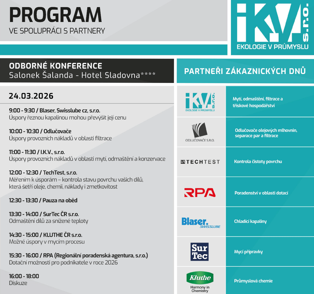 Firma I.K.V., s.r.o. si Vás dovoluje pozvat do Hotelu Sladovna**** na Zákaznické dny dne 24.03.2026